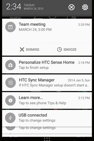 - To dismiss just one notification in the list, drag it left or right. To dismiss all notifications and close the Notifications panel, tap
