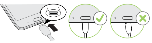 HTC U11 to charge the battery. When the battery power is too low, make sure to use the power adapter to charge, not the USB cable connection with your computer.
