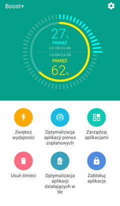 - Optymalizowanie zasobów systemowych w celu wydłużenia czasu pracy baterii podczas korzystania z aplikacji i grania w ulubione gry.