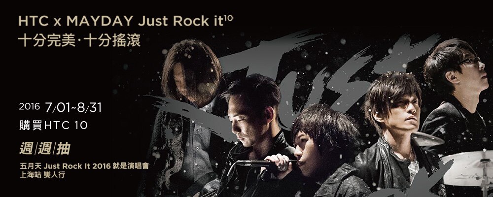 凡消費者於活動期間,至全台HTC專賣店、經銷門市、電信系統商門市及HTC網路商店,購買活動指定型號手機,上網登錄外盒「刮刮券序號」與購買的「機器商品序號(IMEI及S/N)」,於登錄期間截止前,至HTC活動網站完成登錄,就有機會獲得【五月天Just Rock It !! 2016就是演唱會】上海站雙人行。週週抽出,愈早登錄,中獎機會愈多。