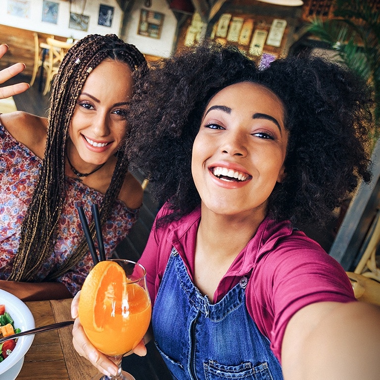 選用美膚模式,為您畫上專業級美妝。輕點就完成,看起來自然又耀眼。還可以用 AR 貼圖,讓相片看起來更有趣。