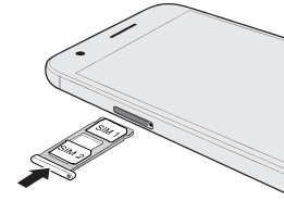 卡金屬接點部分朝外,依此方向放入固定座的 SIM 卡座。務必將截角處對齊固定座上的凹槽。